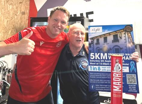 He added “I was diagnosed with prostate cancer earlier this year and I wanted to use the event — under the banner of One in Eight. It is the sad fact that 1 in 8 men in the UK are diagnosed with prostate cancer in their lifetime. I have become a member of the local Prostate Cancer Support Group and I received the warmest of welcomes. They are anxious to raise £100.000 to purchase technology to treat people here in Wrexham. Their primary objective is to champion and heighten the awareness of the disease and the need for more men in the region to get tested by asking their GPs for a simple blood test.